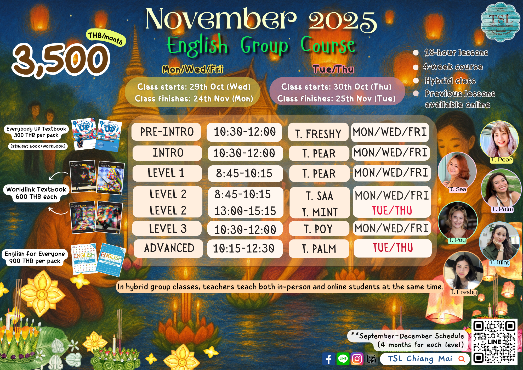 Next step: Apply now or email tslchiangmai@gmail.com for details. or