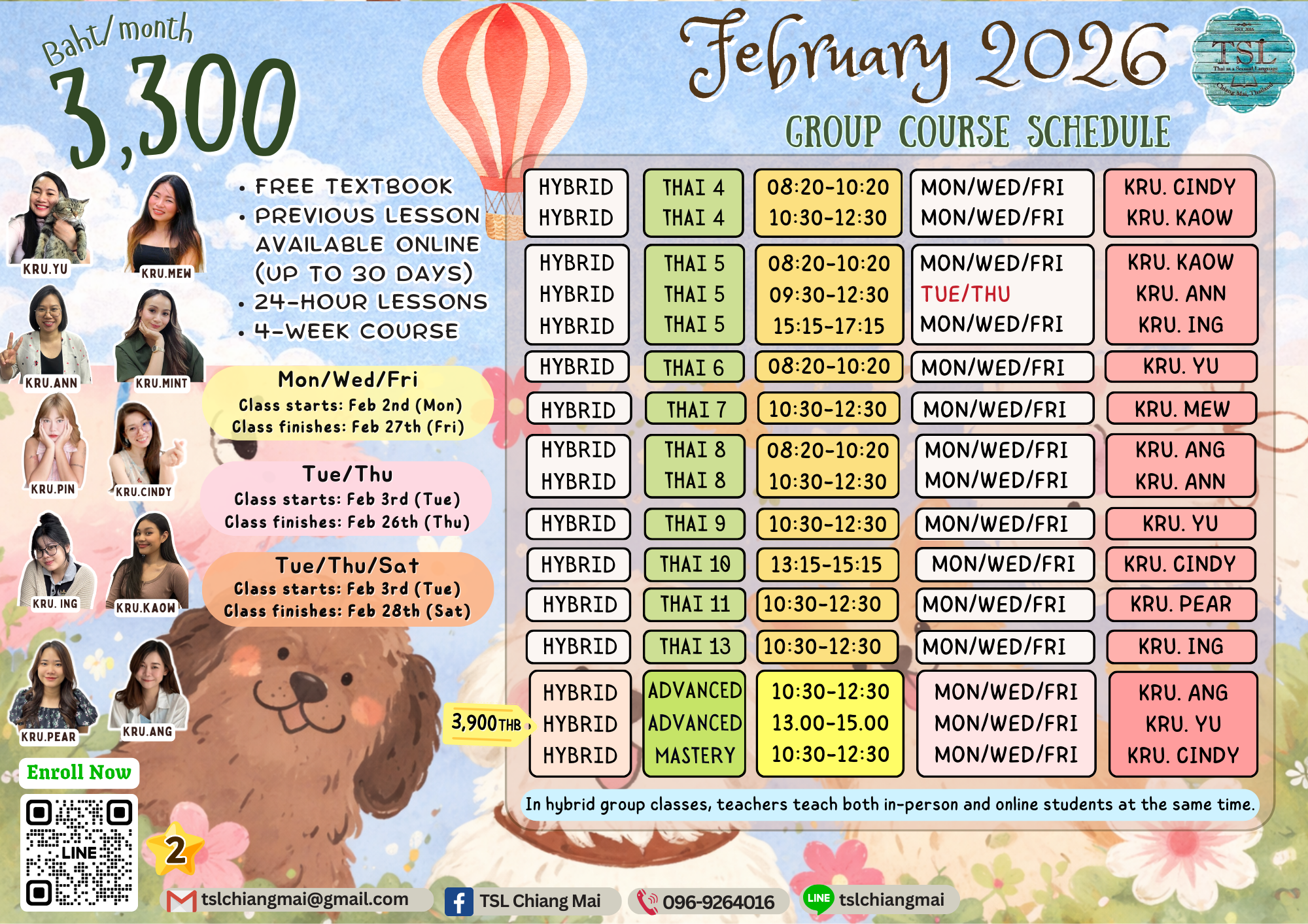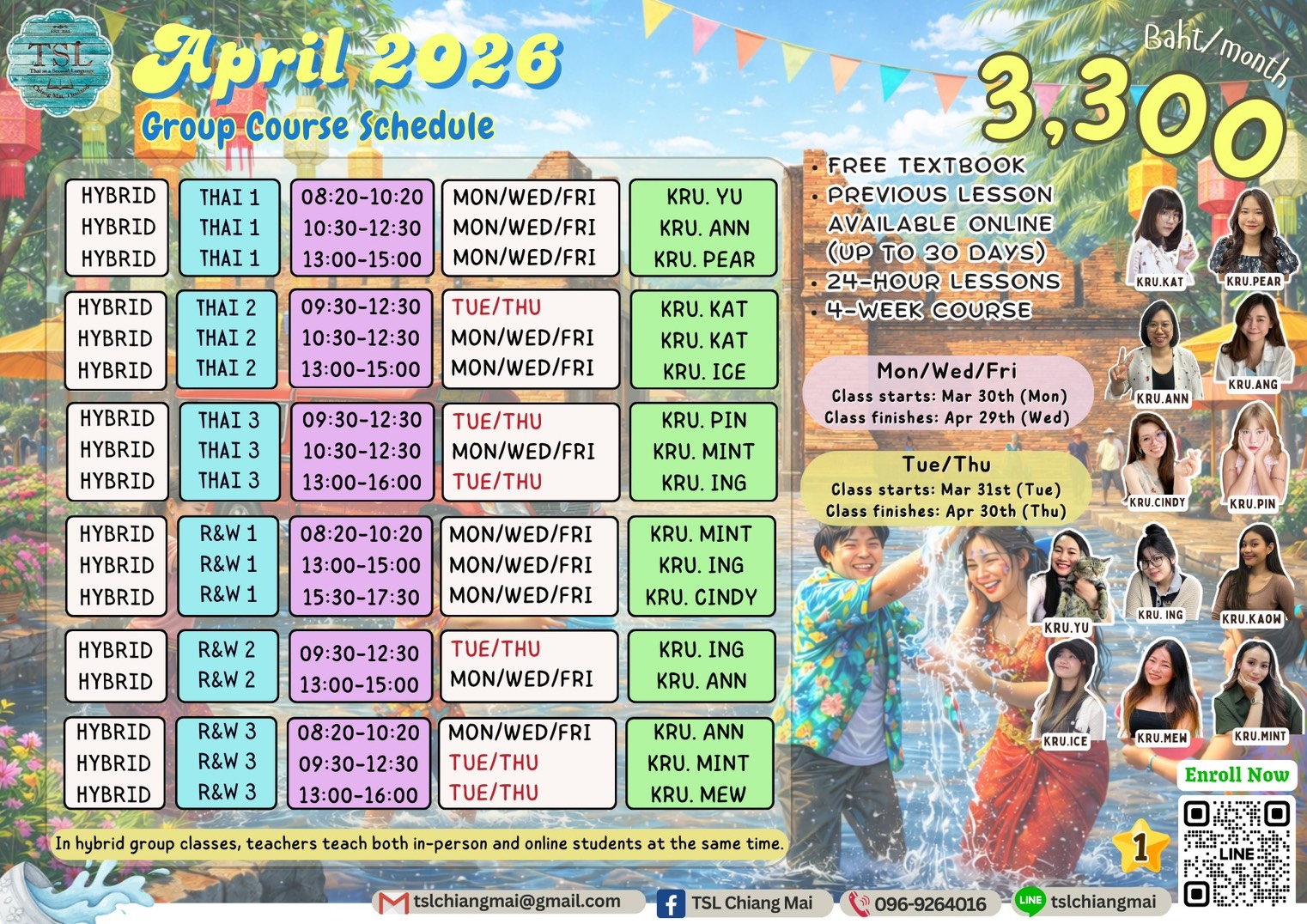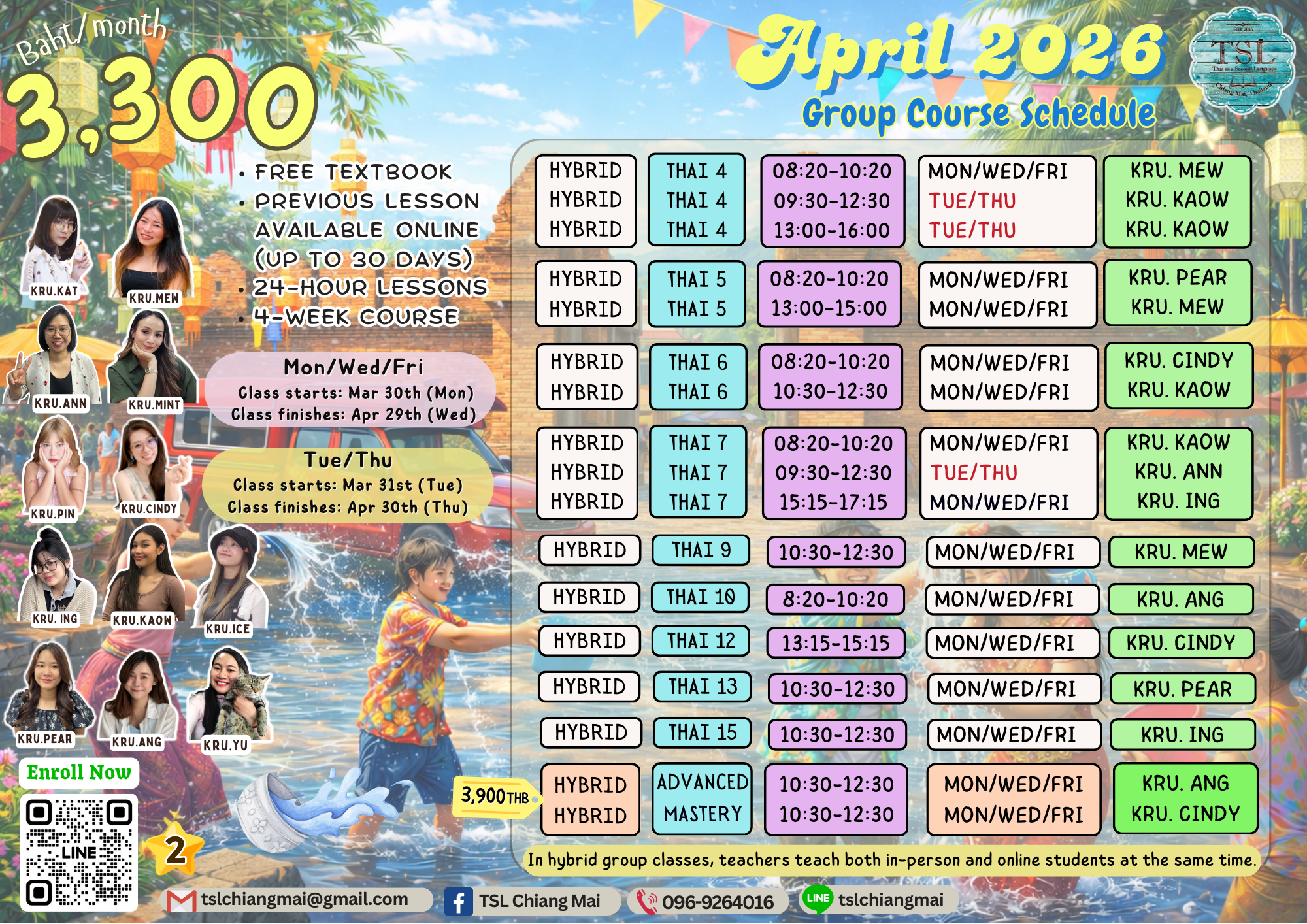 You can watch our teachers' video lessons and demo lessons on our TSL Chiang Mai YouTube channel: Meet our teachers here!